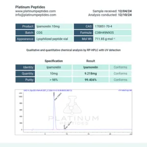 IPA is a synthetic peptide that is currently being studied in growth hormone research. Our high-quality peptide is available in a 10mg size. The product comes in a lyophilized powder form in a 3mL vial that requires bacteriostatic water to reconstitute from solid to liquid form.